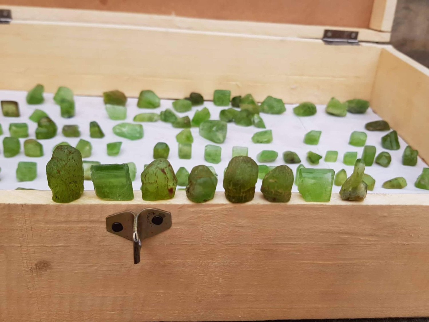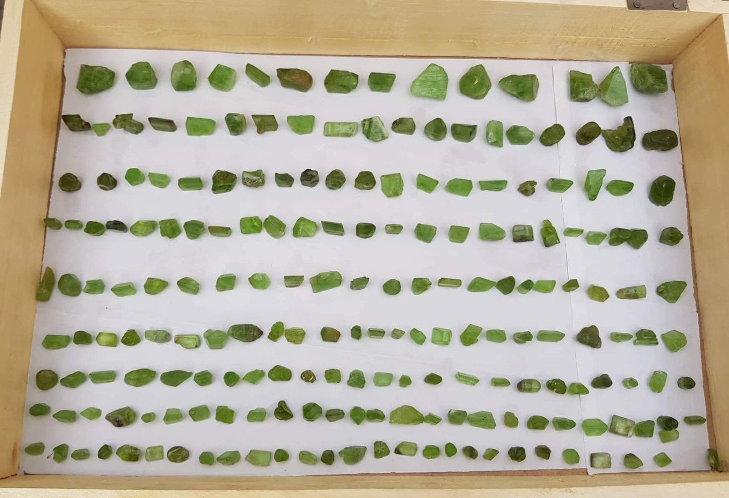 A stunning lot of 7Up-green Peridot crystals from Mansehra, Abbottabad, Pakistan. Known for their vibrant and clear color, these 200 tiny, clean, and perfectly terminated crystals range from 9 mm to 24 mm in size. This beautiful collection displays high transparency and brilliance — an exceptional choice for collectors and gem enthusiasts alike.