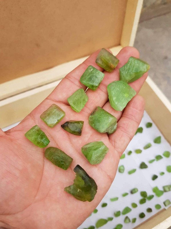 A stunning lot of 7Up-green Peridot crystals from Mansehra, Abbottabad, Pakistan. Known for their vibrant and clear color, these 200 tiny, clean, and perfectly terminated crystals range from 9 mm to 24 mm in size. This beautiful collection displays high transparency and brilliance — an exceptional choice for collectors and gem enthusiasts alike.